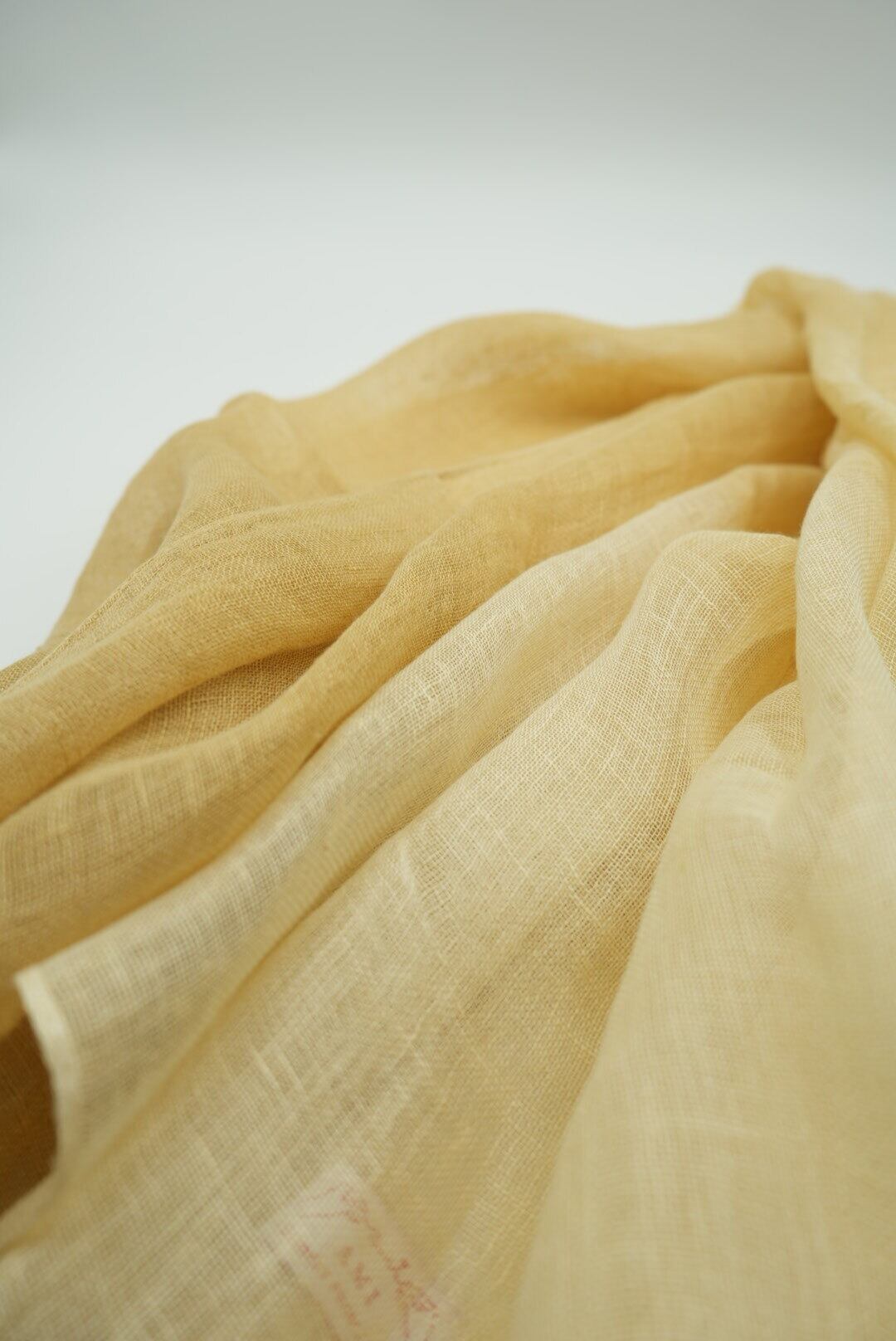 こちらはマリーゴールドの花びらを使った草木染めで仕上げられています。マリーゴールドは『マリア様の黄金の花、マリーゴールド』ともいわれ、春から冬にかけて5〜10回ほどある、聖母マリアの祝日が花の見頃であることから、そう名付けられました。
